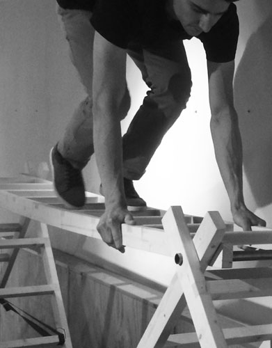 À partir des éléments d’estrades amovibles de l’espace conçu par les architectes Avignon & Clouet dès l’installation d’Entre-deux en 2007, David Picard déploie une architecture basée sur les principes de la construction des ponts. Un temps d’échange avec l’artiste sera prévu à la suite de la performance.